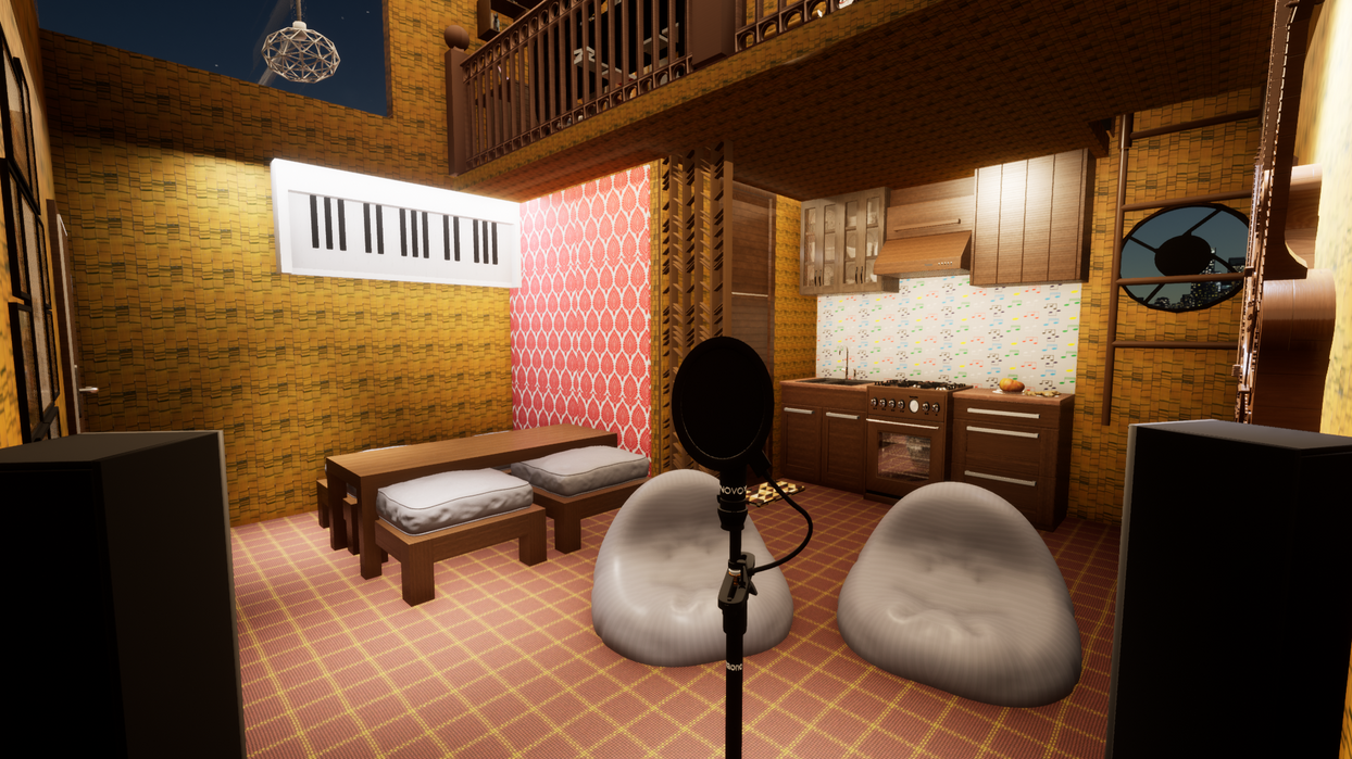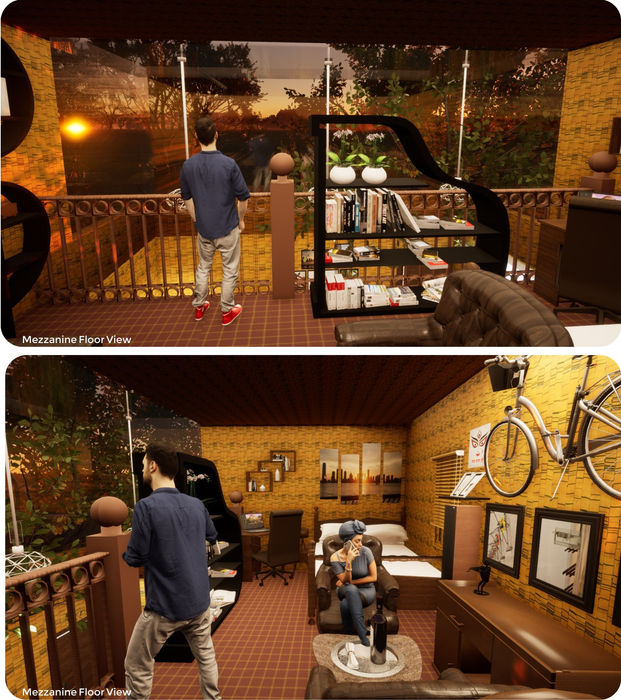 I designed a 15'X15'X15' living pod for Arijit Singh, blending nature and culture. Featuring bamboo, glass, musical artifacts, a mezzanine sleeping area, a practice stage, and Bengali patterns, it offers functionality, openness, and a cultural connection.